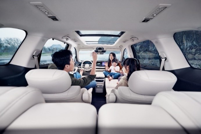 三排宽适大空间,实现三排舒适自由。蓝山DHT-PHEV第三排坐垫、靠背宽度最大均达到了540mm,比理想L8还要更宽、更具承托性;坐姿高度(踵点到胯点)高达340mm,可以带来媲美MPV埃尔法的自由膝部空间,久坐不疲惫。同时,蓝山DHT-PHEV以静音舱设计,全面消除困扰理想的鼓噪声等嘈杂音源,带来更加静谧的三排体验。此外,人体工学电动侧踏还能充分考虑老人及孩子上下车便利性,大大提升了每一位家人的出行便利程度。